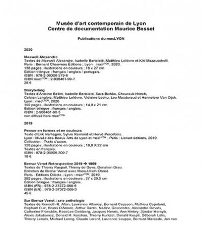 Avec des essais de Thierry Raspail (directeur du mac LYON), Donatien Grau (critique et écrivain), Doryun Chong (conservateur au MoMA, New York), Deirdre Emmons (conservatrice au musée des Confluences, Lyon) ainsi qu’une abondante iconographie sur l’exposition.
