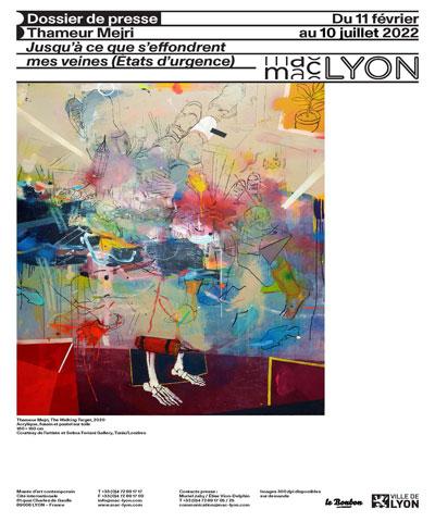 Au travers de dessins, de vastes compositions sur toiles tendues ou flottantes et de peintures murales, les œuvres de Thameur Mejri remettent en question les notions d'humanisme et de construction de l'être humain à l'échelle de la société, en représentant plusieurs paradoxes qui émergent de ces pratiques politiques et culturelles.